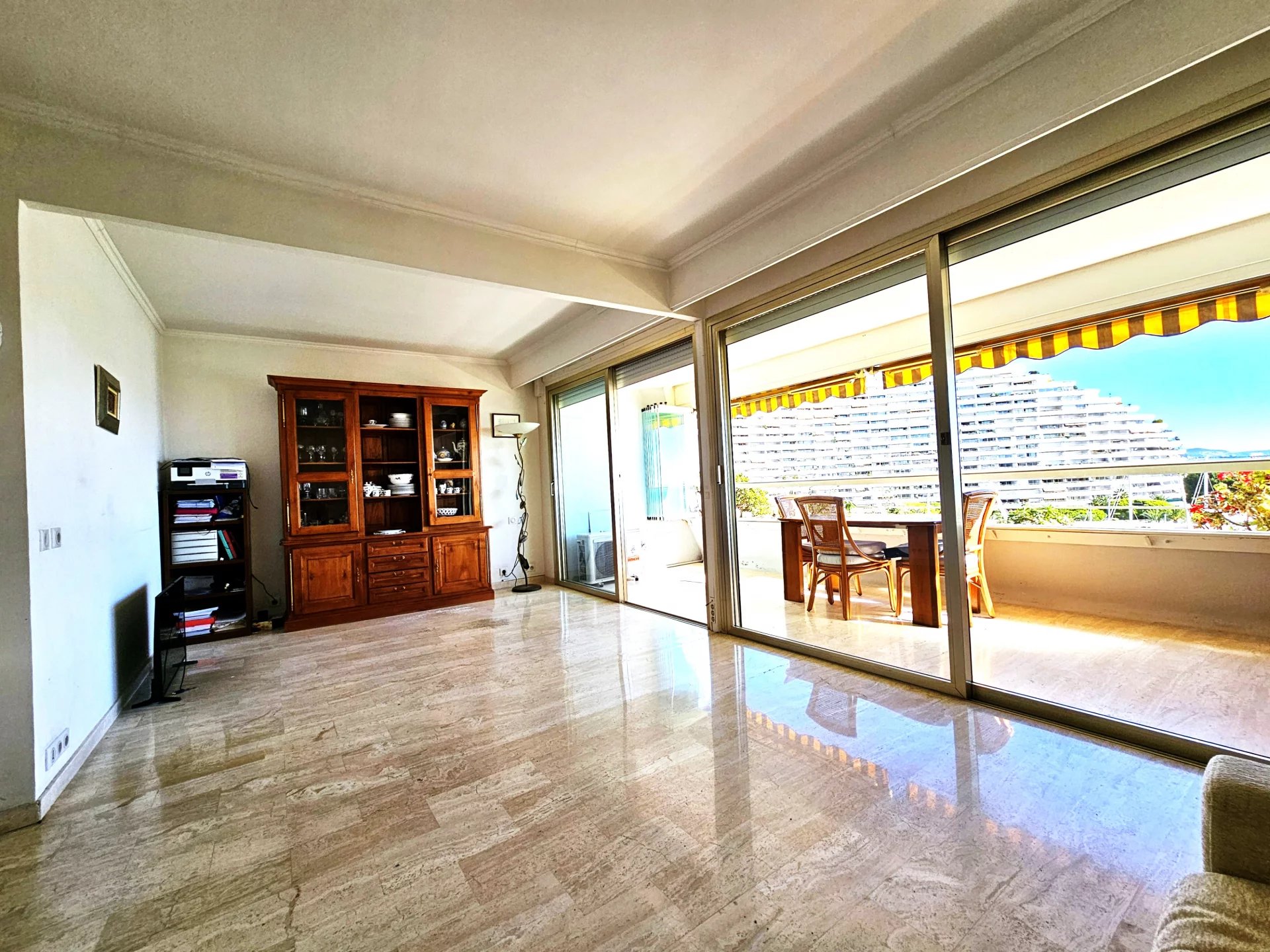 Beau 3 pièces aménagé en 2 pièces, double séjour donnant sur terrasse mur de verre avec vue panoramique, chambre, salle d'eau, toilette séparé, cuisine équipée .Double cave possibilité achat d un grand parking séparément