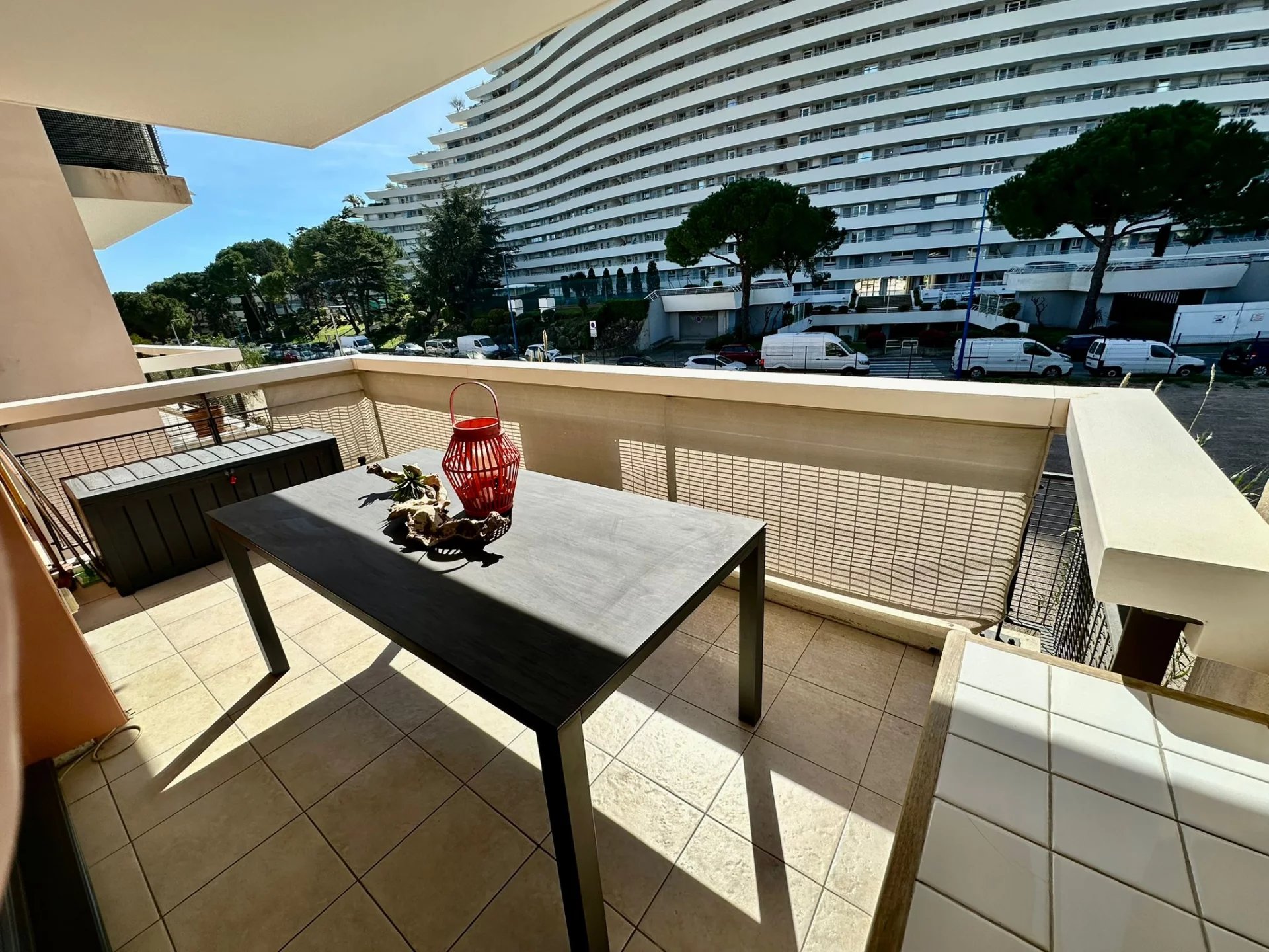RESIDENCE FERMEE AVEC PISCINE A 20 METRES DE LA PLAGE ,BEAU 2 PIECES EN EXCELLENT ETAT,SEJOUR AVEC CUISINE US DONNANT SUR UNE TERRASSE PROFONDE EXPO SUD CALME ET ENSOLLEILLE CHAMBRE, TOILETTE INDEPENDANT, SALLE DE DOUCHE, APPARTEMENT ENTIREMENT CLIMATISE GARAGE FERME EN SUS DU PRIX